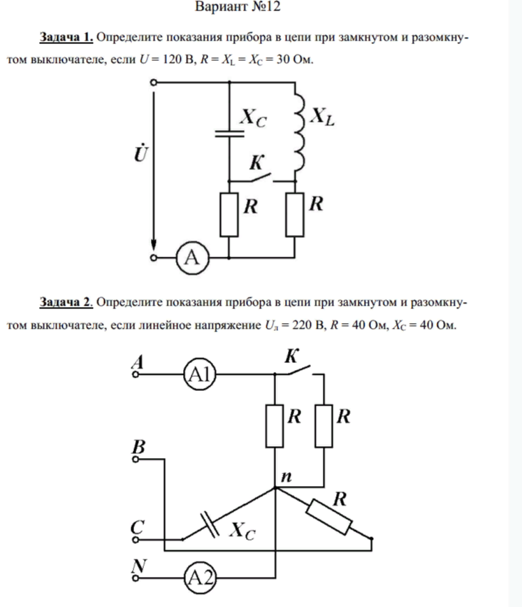 Ответы к контрольной работе 2: Однофазные и трёхфазные цепи синусоидального тока вариант 12