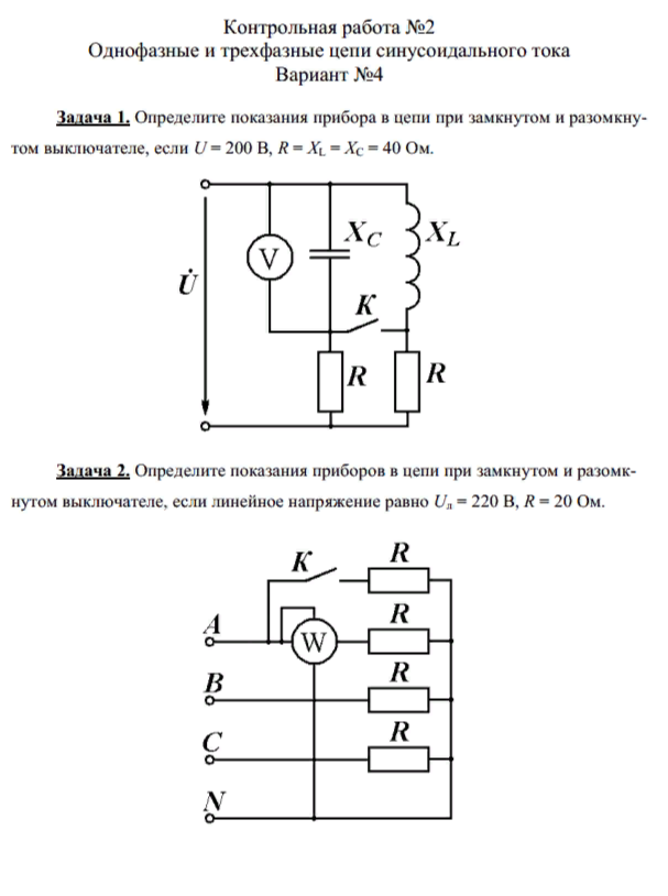 Ответы к контрольной работе 2: Однофазные и трёхфазные цепи синусоидального тока вариант 4