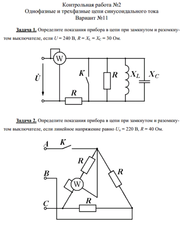 Ответы к контрольной работе 2: Однофазные и трёхфазные цепи синусоидального тока вариант 11