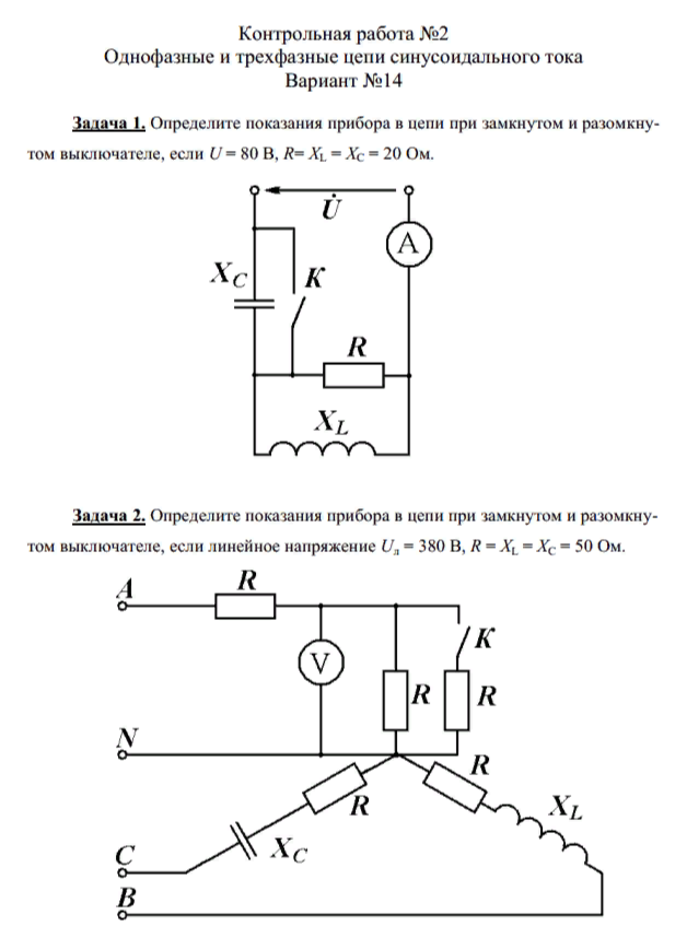 Ответы к контрольной работе 2: Однофазные и трёхфазные цепи синусоидального тока вариант 14