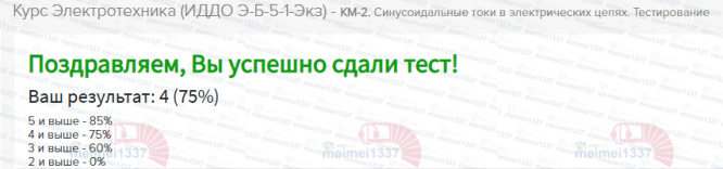 Курс Электротехника - КМ-2. Синусоидальные токи в электрических цепях. Тестирование - 75%