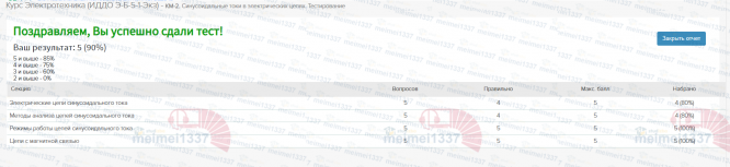 Ответы к заданиям КМ-2: КМ-2. Синусоидальные токи в электрических цепях. Тестирование - 90%