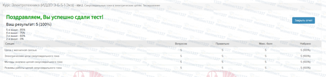 Ответы к заданиям КМ-2: КМ-2. Синусоидальные токи в электрических цепях. Тестирование - 100%