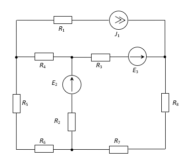 Определить количество независимых уравнений, которые необходимо составить для предложенной цепи по методу контурных токов? Параметры всех сопротивлений и источников известны