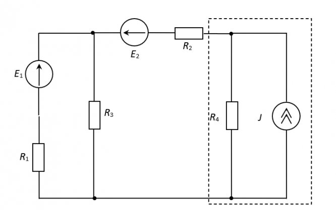 В рассматриваемой схеме перед проведением расчетов выделенный участок преобразован к виду последовательной схемы замещения источника. Сколько уравнений по методу узловых напряжений необходимо будет составить в полученной после преобразования схеме?