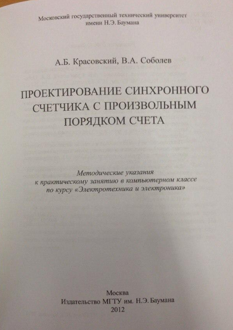 Главная » Учебные материалы » Электротехника (ЭлТех) » Книги » МГТУ им. Н.Э.Баумана » 7 семестр » А.Б. Красовский, В.А. Соболев - Проектирование синхронного счетчика с произвольным порядком счета