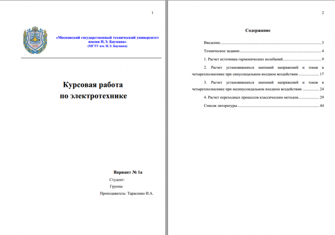 Для студентов МГТУ им. Н.Э.Баумана по предмету Электротехника (ЭлТех)Курсовая работа по курсу "Электротехника" - Вариант № 1аКурсовая работа по курсу "Электротехника" - Вариант № 1а