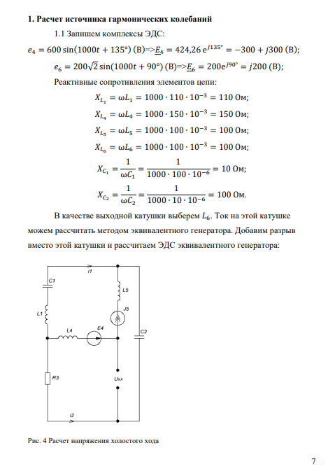 1. Расчет источника гармонических колебаний (ИГК). 1.1 Представить исходную схему ИГК относительно первичной обмотки трансформатора эквивалентным источником напряжения. Определить его параметры (ЭДС и внутреннее сопротивление) и значение тока в первичной обмотке трансформатора. В качестве первичной обмотки трансформатора выбрать индуктивность в любой ветви, кроме ветви с идеальным источником тока. 1.2 Записать мгновенные значения тока и напряжения первичной обмотки трансформатора Т1 и построить их волновые диаграммы. 1.3 Определить значения Mnq, Mnp, Lq, Lp Т1 из условия, что индуктивность первичной обмотки Ln известна, U1 = 5 B, U2= 10 B. Коэффициент магнитной связи обмоток kследует выбрать самостоятельно в
