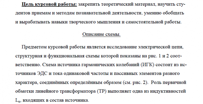 Характеристики курсовой работы
