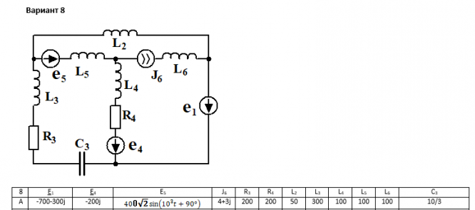 Для студентов МГТУ им. Н.Э.Баумана по предмету Электротехника (ЭлТех)Вариант 8(а) – Курсовая работа – Анализ установившихся и переходных режимов в линейных электрических цепяхВариант 8(а) – Курсовая работа – Анализ установившихся и переходных режимов в линейных электрических цепях