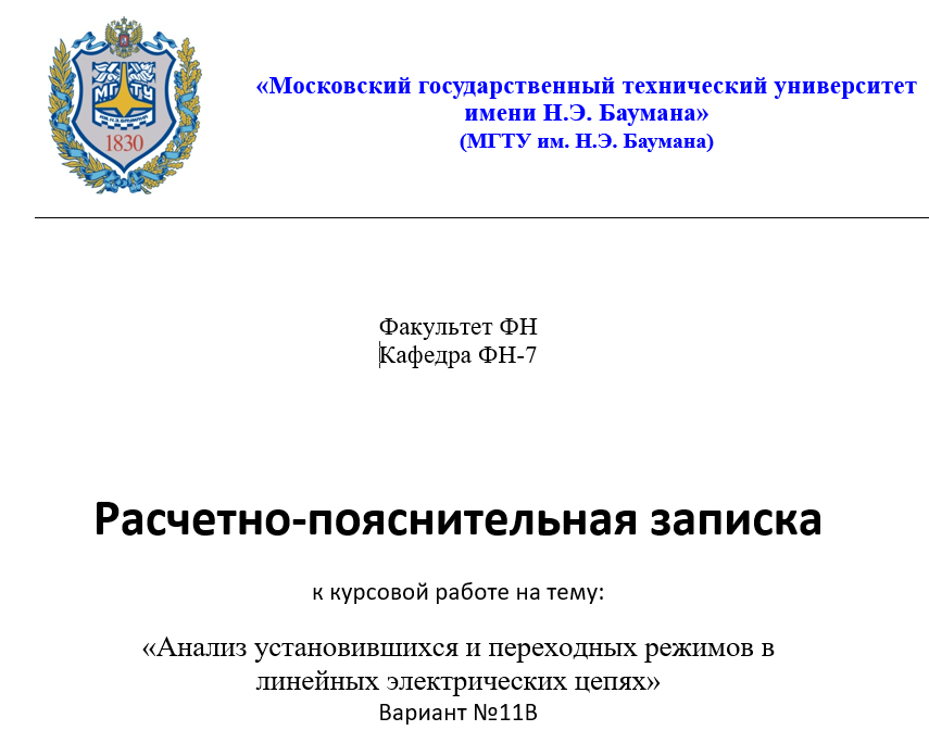 Для студентов МГТУ им. Н.Э.Баумана по предмету Электротехника (ЭлТех)Анализ установившихся и переходных режимов в линейных электрических цепяхАнализ установившихся и переходных режимов в линейных электрических цепях