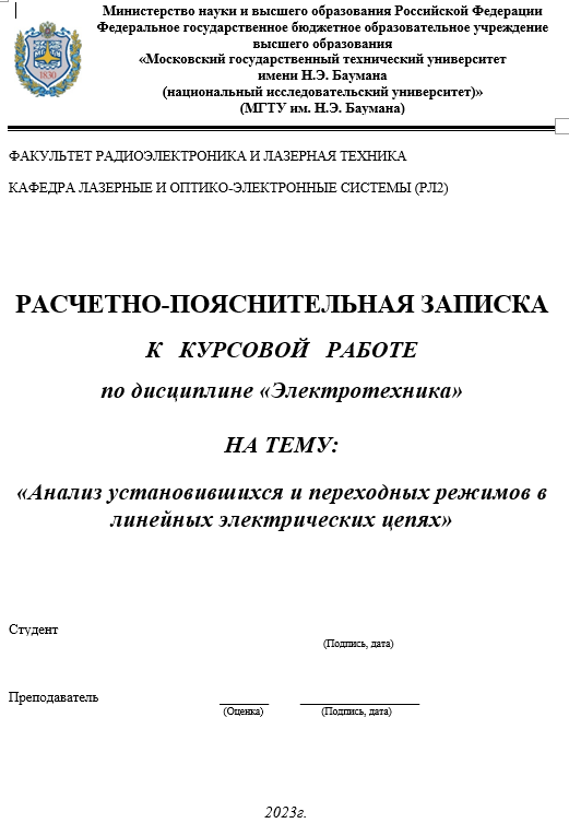 Для студентов МГТУ им. Н.Э.Баумана по предмету Электротехника (ЭлТех)Анализ установившихся и переходных режимов в линейных электрических цепяхАнализ установившихся и переходных режимов в линейных электрических цепях