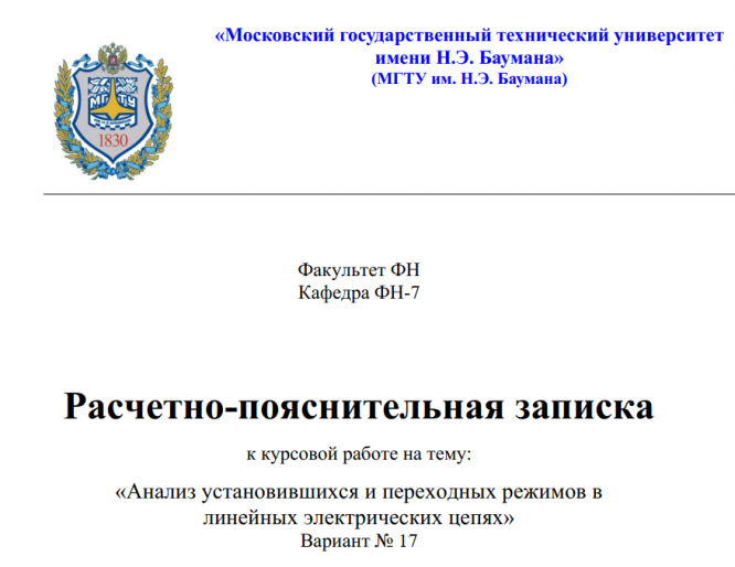 Главная » Учебные материалы » Электротехника (ЭлТех) » Курсовые работы » МГТУ им. Н.Э.Баумана » Несколько классов/семестров » Вариант 17 » Анализ установившихся и переходных режимов в линейных электрических цепях