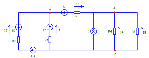 Целью работы является расчет данной электрической схемы (вычисление всех напряжений ветвей и всех токов в ветвях) с использованием различных методов.