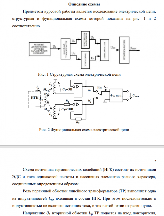 Цель курсовой работы — закрепить теоретический материал, научиться приемам и методам познавательной деятельности, умению обобщать и вырабатывать навыки творческого мышления и самостоятельной работы. Для расчета цепей, построения графиков и оформления отчета целесообразно применять персональные ЭВМ (ПЭВМ). При этом можно пользоваться готовыми программами систем инженерных и научных расчетов типа MATLAB, MATHCAD, MI-CROCAP и другими или самостоятельно написанными, что способствует закреплению навыков работы с вычислительной техникой. Умение правильно использовать компьютер становится важным показателем работы специалиста. Отсутствие у студента доступа к ЭВМ не является причиной невыполнения курсовой работы или отдельных ее пунктов.