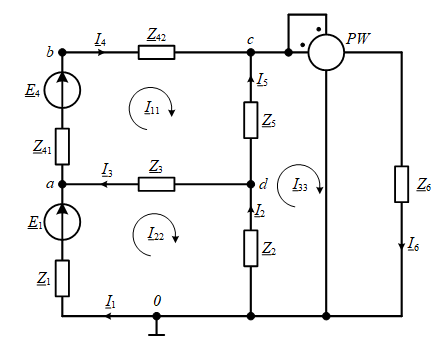 4. Рассчитать комплексные токи в цепи выбранным вами методом и записать мгновенные значения токов с частотой 50 Гц. Определить показания ваттметра. Результаты расчета занести в таблицу 2.
