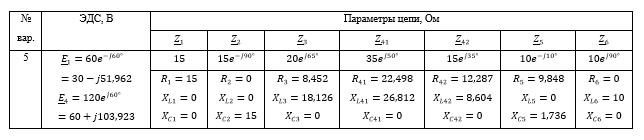 5. Проверить выполнение 2-го закона Кирхгофа в комплексной форме для внешнего контура цепи.