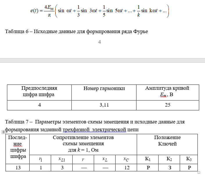 4. Рассчитать симметричную трехфазную цепь при питании ее несинусоидальным напряжением. Определить показания приборов, измеряющих действующие значения электрических величин в симметричной трехфазной электрической цепи в зависимости от действия несинусоидальной ЭДС: