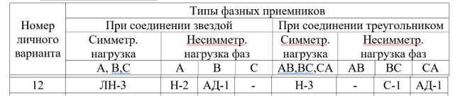 1. Начертить общую полную электрическую схему заданной электрической цепи в соответствии со своим личным вариантом. Характер фазных приемников задан в табл.18.