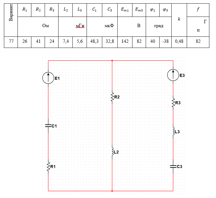 Для электрической схемы цепи синусоидального тока, изображенной на рис. 1 и параметрами, заданными в табл. 1 в соответствии с номером варианта выполнить: