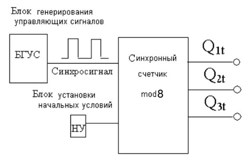 - Составляем таблицу истинности проектируемого трехбитового двоичного синхронного счетчика