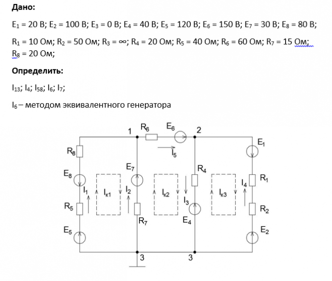 5. Определить методом эквивалентного генератора ток в ветви с резистором, указанным в варианте задания.