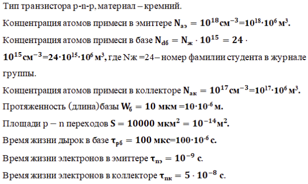 1. Провести расчет основных параметров транзистора: αN, αI, Iэ0, Iк0.