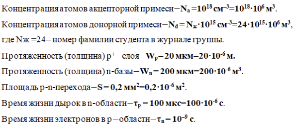 1. Провести расчет φk, Is и rб диодов на основе германия и кремния.