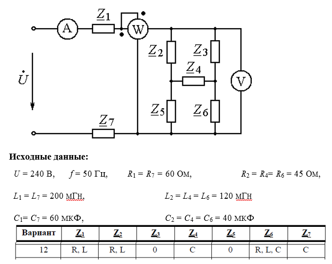 - Рассчитать сопротивления реактивных элементов и записать в комплексной форме сопротивления ветвей схемы.
