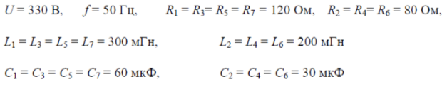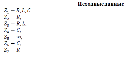- Рассчитать сопротивления реактивных элементов и записать в комплексной форме сопротивления ветвей схемы.
