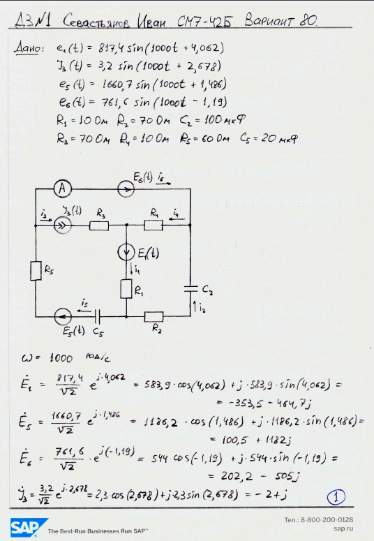 Для студентов МГТУ им. Н.Э.Баумана по предмету Электротехника (ЭлТех)Оформленное ДЗ1 Вариант 80Оформленное ДЗ1 Вариант 80