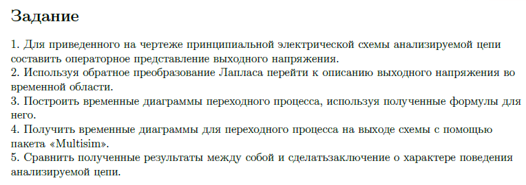 Главная » Учебные материалы » Электротехника (ЭлТех) » Домашние задания » МГТУ им. Н.Э.Баумана » 6 семестр » Номер 3 » Вариант 19 » Домашнее задание "Анализ переходных процессов электрической цепи"