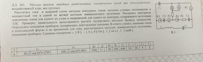 ДЗ 1: (ДЗ№1 ВАР№ 1)Методы анализа линейных разветвленных электрических цепей при синусоидальных воздействиях вариант 1