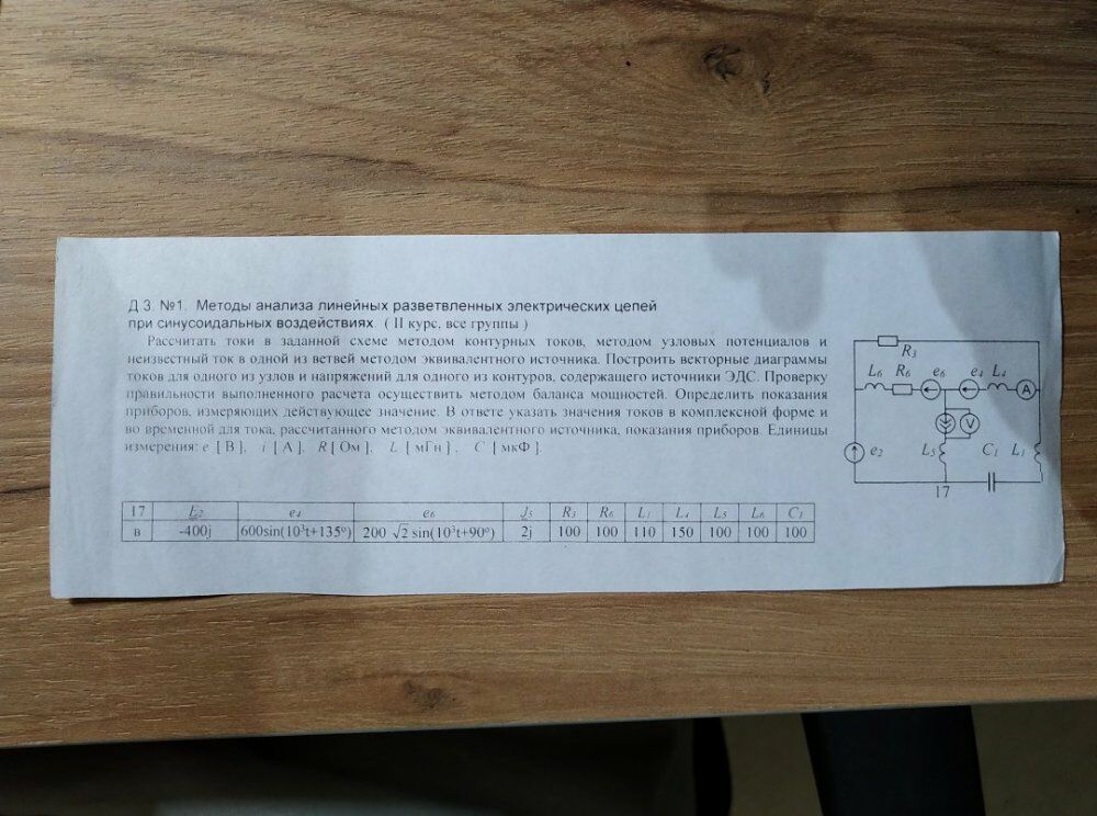 ДЗ 1: 2020 ТР-1 17 вариант методы анализа разветвленныых цепей (условие ниже) вариант 17