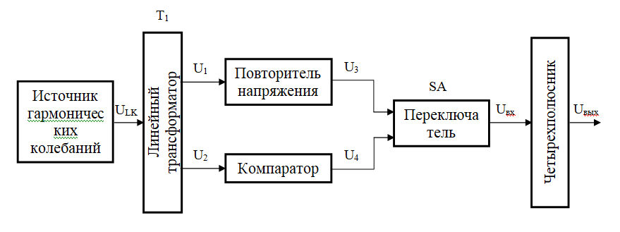 | Переключатель Кл перевести в положение 2 в момент времени, когда входное напряжение , , т.е в момент начала положительного импульса напряжения . Это условие будет выполнено при равенстве аргумента входного напряжения , где k = 0, 1, 2, 3, … | | |