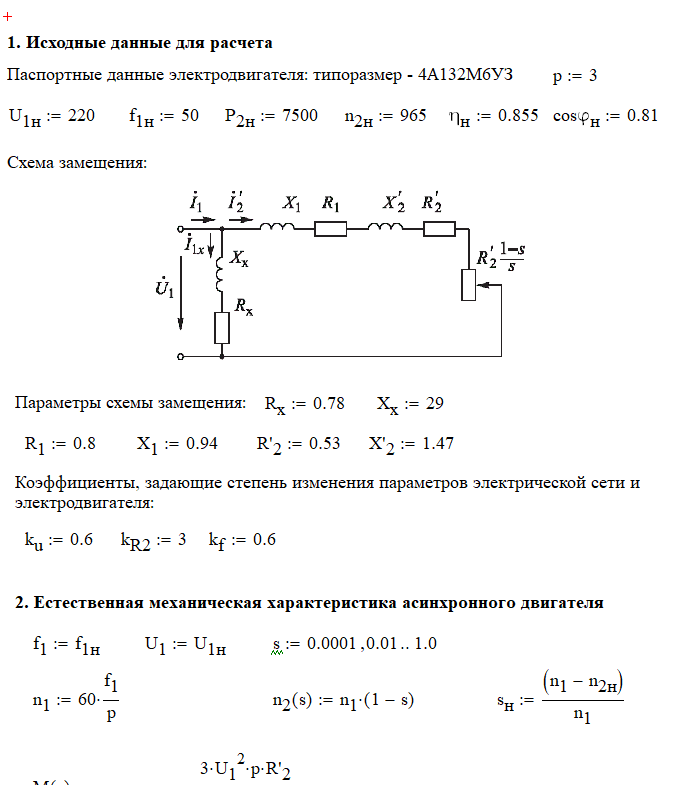 1 ДЗ, 49 Вариант "Расчет характеристик трехфазного асинхронного двигателя", выполненный Mathcad v15, нужно только распечатать, 2020г (препод Соловьев)