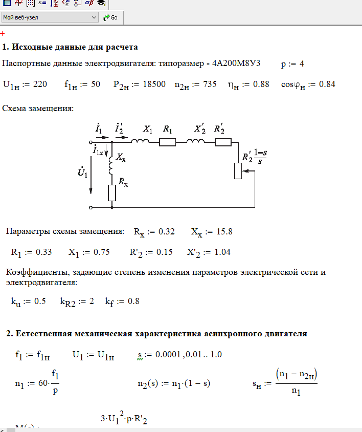 Для студентов МГТУ им. Н.Э.Баумана по предмету Электротехника (ЭлТех)1 ДЗ, 72 Вариант "Расчет характеристик трехфазного асинхронного двигателя", выполнено в маткаде, 2020г (препод Соловьев)1 ДЗ, 72 Вариант "Расчет характеристик трехфазного асинхронного двигателя", выполнено в маткаде, 2020г (препод Соловьев)