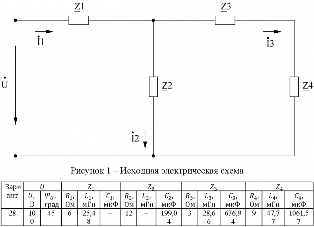 ДЗ 2: Расчет линейных цепей синусоидального тока вариант 28