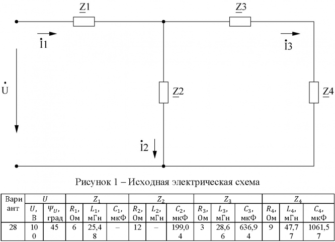 Задание из методических указаний: "Волченсков В.И. ВЫПОЛНЕНИЕ ДОМАШНЕГО ЗАДАНИЯ №2 ПО КУРСУ "ЭЛЕКТРОТЕХНИКА И ЭЛЕКТРОНИКА" (ТЕМА "РАСЧЕТ ЛИНЕЙНЫХ ЦЕПЕЙ СИНУСОИДАЛЬНОГО ТОКА")" - Москва, 2011.