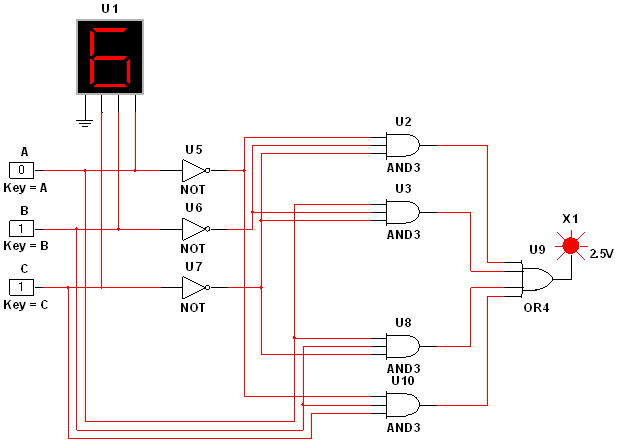 Собираем схему для полученной функции в ее совершенной дизъюнктивной форме – рисунок 1, затем проверяем ее работоспособность по таблице истинности.