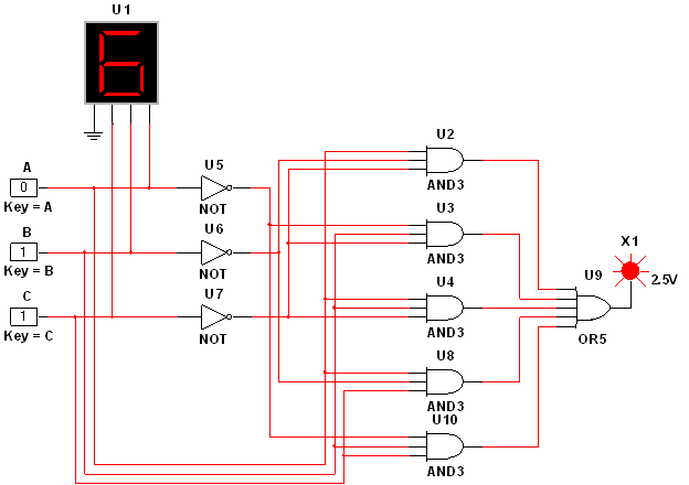 Собираем схему для полученной функции в ее совершенной дизъюнктивной форме – рисунок 1, затем проверяем ее работоспособность по таблице истинности.