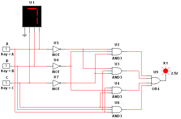 Собираем схему для полученной функции в ее совершенной дизъюнктивной форме – рисунок 1, затем проверяем ее работоспособность по таблице истинности.