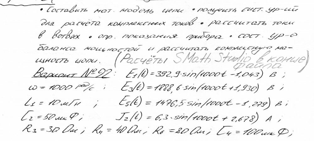 ДЗ 1: 92 Вариант ДЗ1 (Методы анализа лин. разв. эл. цепей при sin воздействии) вариант 92