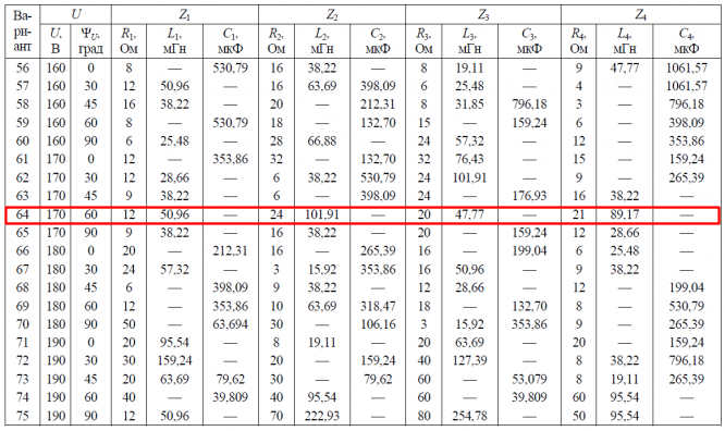 ДЗ 2: Расчет линейных цепей синусоидального тока вариант 64