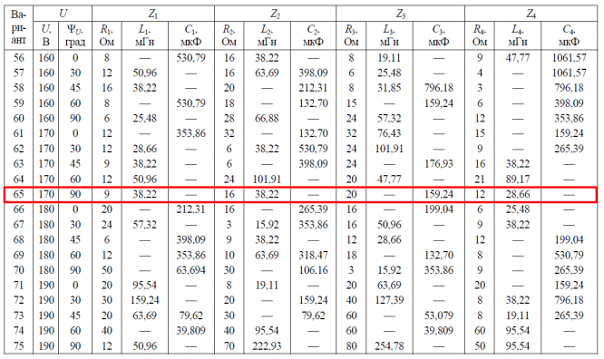 ДЗ 2: Расчет линейных цепей синусоидального тока вариант 65