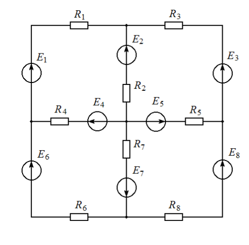 - Начертить в соответствии с вариантом задания расчетную электрическую схему, записать исходные данные и определить в схеме количество ветвей и узлов.