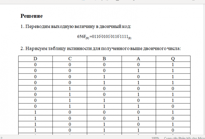- Нарисовать таблицу истинности с четырьмя входами и одним выходом. (A, B, C, D, где D – младший разряд)