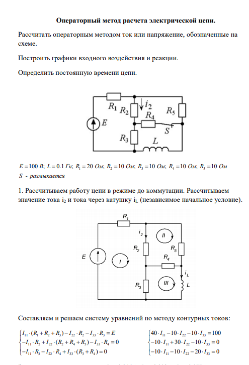 Операторный метод расчета электрической цепи.Рассчитать операторным методом ток или напряжение, обозначенные на схеме. Построить графики входного воздействия и реакции. Определить постоянную времени цепи