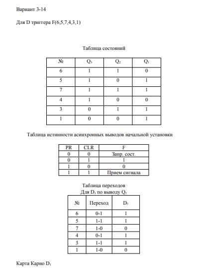 Вариант 3-14 Для D триггера F(6,5,7,4,3,1)