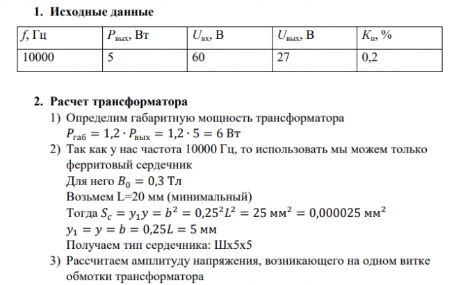 Вариант 42 - ДЗ №1 - Расчет блоков питания